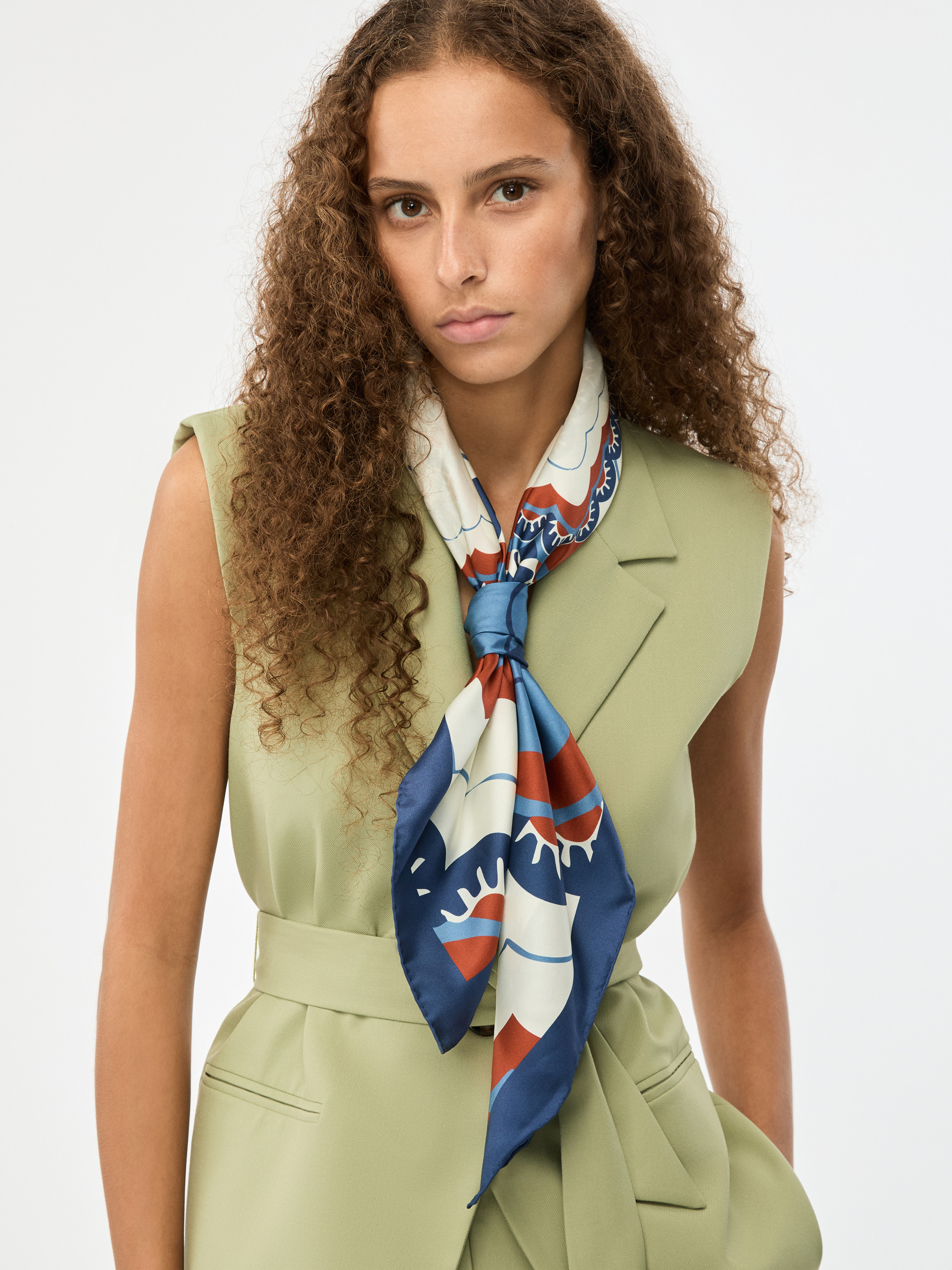 • Square scarf in printed 100% pure silk fabric